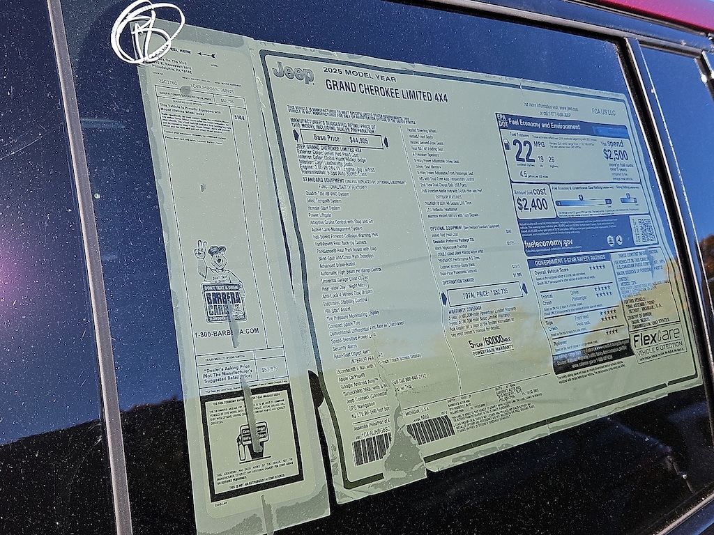 Introducing the 2025 Jeep Grand Cherokee Limited 4x4, a stunning blend of performance, luxury, and advanced technology. Dressed in a captivating Velvet Red Pearlcoat exterior, this SUV commands attention on and off the road. The sophisticated Wicker Beige/Black interior offers a refined atmosphere, combining comfort and style for an unparalleled driving experience. Powered by a robust 3.6L Pentastar V6 DOHC engine, the Grand Cherokee delivers an impressive 293 horsepower while utilizing regular unleaded fuel. Experience smooth handling and exceptional traction with the 4x4 capability, designed to conquer any terrain with confidence and ease. This model is equipped with state-of-the-art features that enhance safety, convenience, and entertainment, ensuring every journey is enjoyable. Whether you're navigating city streets or exploring the great outdoors, the 2025 Jeep Grand Cherokee Limited 4x4 is the ultimate companion for adventure seekers and families alike. Don't miss out on the opportunity to own this versatile and stylish SUV that embodies the spirit of exploration. Elevate your driving experience-secure your 2025 Jeep Grand Cherokee Limited 4x4 today!