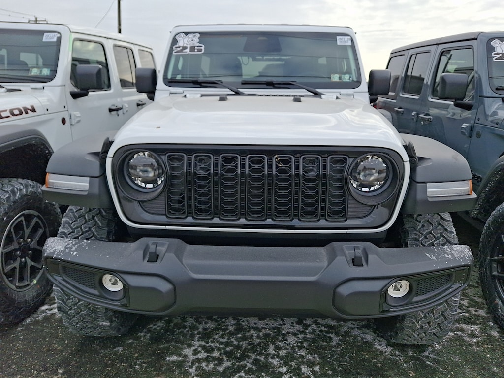 Discover the versatility and rugged appeal of the 2026 Jeep Wrangler 4-Door Willys 4x4, a perfect blend of capability and style. Dressed in a striking bright white clearcoat exterior, this vehicle's bold aesthetic is complemented by a sleek black interior, creating a modern yet timeless look. Powered by a robust 2.0L i-4 gasoline direct injection engine, this performance-driven Wrangler delivers an impressive 270 horsepower, ensuring that you'll conquer both city streets and off-road trails with confidence. The DOHC design and intercooled turbo ensure a smooth, efficient driving experience, whether you're navigating everyday commutes or embarking on adventurous escapes. As a 4-door model, this Wrangler offers ample space for passengers and gear, making it an ideal choice for families or outdoor enthusiasts. Built to handle any terrain, the 4x4 capability ensures that you remain in control no matter the conditions. Experience the freedom of driving a Jeep with the perfect combination of rugged toughness and refined comfort. Don't miss your opportunity to own the 2026 Jeep Wrangler 4-Door Willys 4x4-where adventure awaits at every turn.