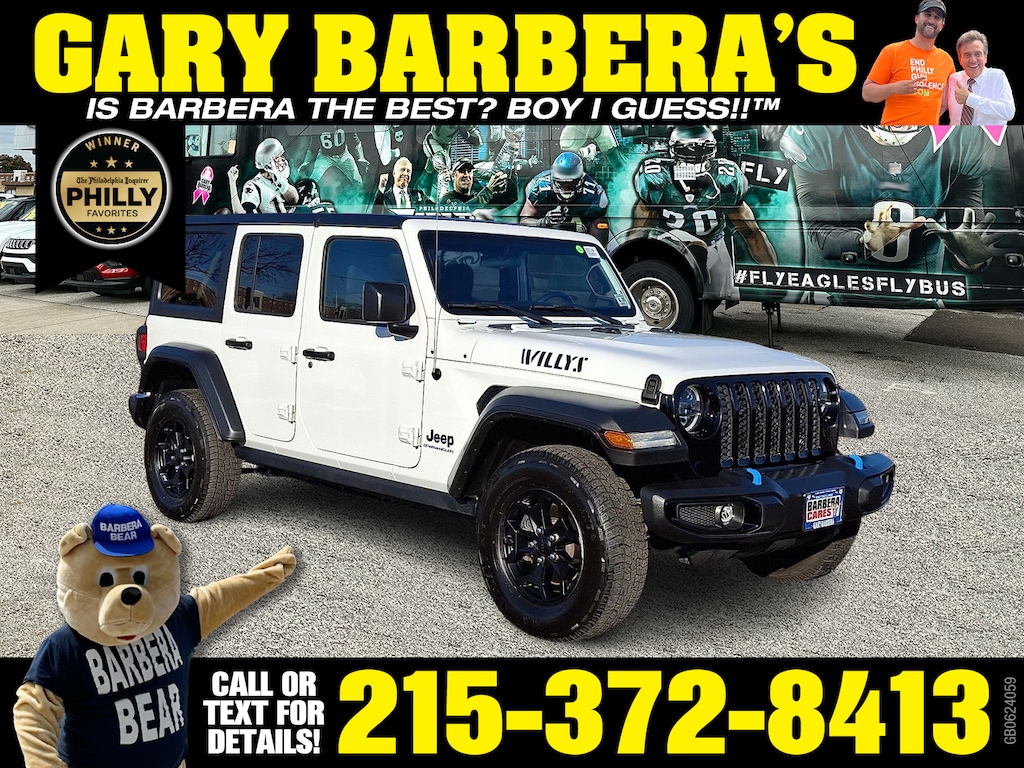 Introducing the 2023 Jeep Wrangler 4xe 4x4, a perfect blend of rugged capability and modern efficiency. Dressed in a striking Bright White Clearcoat (PW7) exterior, this certified pre-owned SUV is not just a vehicle; it's an experience waiting to be had. Inside, the sleek black interior (X9) provides a sophisticated yet durable cabin, ideal for both adventure and everyday use. Powered by a robust 2.0L I-4 gasoline direct injection engine, this Wrangler generates an impressive 270 horsepower, delivering thrilling performance on all terrains. The intercooled turbo design ensures both power and efficiency, making it perfect for off-road enthusiasts and urban commuters alike. The 4x4 capability allows you to conquer any challenge, from rocky trails to snowy streets, with confidence. With its blend of advanced engineering and iconic design, the 2023 Jeep Wrangler 4xe is the ultimate companion for those seeking adventure while prioritizing sustainability. Experience the freedom of open-air driving and explore new horizons-this SUV is ready for your next journey. Don't miss your chance to own a certified pre-owned Jeep that perfectly embodies the spirit of adventure.